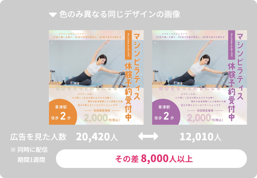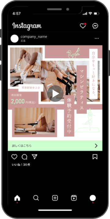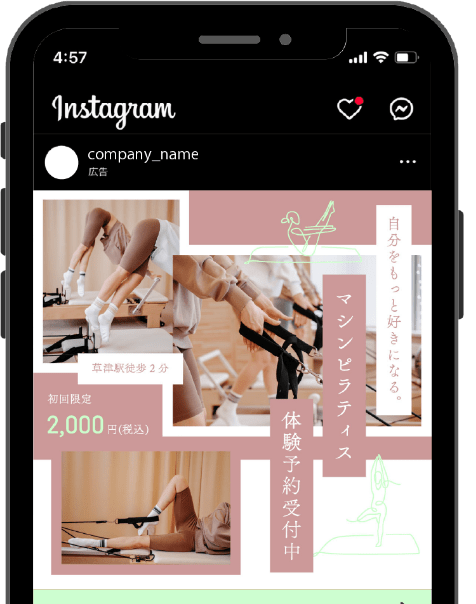 Instagram広告で即効集客月5万円~ 低予算から 予算に合わせて 始められます! こんな方におすすめ Instagram広告って聞いたことはあるけどよくわからない すでに運用を頑張っているけどあまり集客につながっていない 広告出してみたいけど手が付けられていない 広告に予算はあまりかけられない とにかく即効性のある集客方法を探している 当社にお任せいただければInstagram広告で すばやく 低予算から 全任せで 集客が可能です! Instagram広告とは? インスグラム広告は、インスグラム 上での広告配信サービスです。一般的な投稿やストーリーなどに並んで表示されるため、画像や動画を用いてユーザーに自然な流れで商品やショップなどの魅力を伝えることができます。 そもそもインスグラムは、ユーザーの興味や行動に伴ったコンテンツ・広告を優先して表示するようになっているので、 すでに興味を持っている顕在客への訴求が可能です。また、広告をタップすると予約ページやオンラインショップへ移動させることもできますので、直接集客に繋がります。 画像広告 動画広告 ストーリーズ広告 リール広告 発見タブ広告 Instagram広告のメリット・特徴 精度の高いターゲティングが可能 Instagramは興味・行動に伴ったコンテンツを優先して表示するようなっています。さらには年齢や性別、居住地を指定できますので、より効果的な訴求が可能です。 低コストから 始められる Instagramの広告は、Facebookの広告システムで提供されており、非常に低コストで実施できます。1日あたり100円~配信可能で、お客様のご予算に合わせて設定いただけます。 効果の分析が簡単にできる Instagram広告のサービスには広告のパフォーマンスを分析し、測定するための機能が備わっています。広告のクリック率、インプレッションなどを把握し、広告戦略を最適化できます。 形式のバリエーションが豊富にある Instagram広告のサービスには広告のパフォーマンスを分析し、測定するための機能が備わっています。広告のクリック率、インプレッションなどを把握し、広告戦略を最適化できます。 それぞれのお客様にあった最適な広告配信が実現できます Instagram広告とInstagram運用の違い Instagram広告 広告表示で宣伝活動を行う 特徴 フォロー関係なく不特定多数+すでに興味があるユーザーに、投稿を表示できるため拡散力が高い顕在顧客(すでに製品やサービスへ対する高い興味関心を持っている客)の獲得がメイン Instagram運用 日常的な投稿で宣伝活動を行う 特徴 フォローしているユーザーを中心に投稿が表示されるため、Instagram広告に比べると拡散力が低い見込み客(ファン・将来顧客になりうる客)の獲得・育成がメイン Instagram広告の方が訴求力が高く すばやく集客効果を実感することが出来ます! さらにInstagram広告には2種類あります! 広告出稿 新たに広告を作成する 特徴 認知度アップやランディングページへの訪問、メルマガ登録や資料請求、商品購入、問い合わせなど広告配信の目的を必要に応じて設定することができるInstagramとFacebookの両方に配信可能広告のクリエイティブや配信ターゲット、配信設定を細かく設定可能 投稿を宣伝 過去の投稿を広告表示する 特徴 いいねやコメント等のリアクション獲得やフォロワー数の増加など、アカウント育成を目的としているInstagramのみの配信簡単な配信ターゲットの設定のみ可能 広告出稿の方が目的に沿った最適化・ターゲッティングが可能となり、 高い集客効果が見込めます! Instagram広告が効果的な業種 若年層や女性をターゲットとした商品・サービスを扱っている業種 ex. 美容 フィットネス ファッション イベント 学習 趣味に関連する商材を取り扱っている業種 ex. スポーツ アウトドア 音楽 料理 写真 写真映えする商材を取り扱っている業種 ex. 料理 観光 インテリア 不動産 アクセサリー 当社の強み 1低予算から、もしくは予算に合わせて始められます! Instagram広告運用代行サービスの多くは、広告費用のパーセンテージを手数料として請求する場合がほとんどですが、当社は広告運用代行費は定額で、5万円からと低価格です。広告費はお客様のご要望に合わせて設定いたしますので大体月7万円ほどからInstagram広告を始めることが可能です。 初期費用 無料 代行費 3.5万円~ 初期費用 ご予算に合わせて 2効果的な広告を追求!週間ごとにABテストを行います! ABテストとは? 2つの広告を比較して、どちらが効果的かを確認する手法です。同じデザインの場合でも、色が違えば反響が大きく変化します。 なぜ一週間なの? 同じ画像を使用した場合、1週間ほどでユーザーに見られる回数が減少する傾向にあるためです。 3全て丸投げでOK!お客様自身でしていただくことは何もありません! 最初に事業に関するターゲット層やコンセプト、イメージ等をお尋ねします。いただいた情報を精査し当社でコンテンツ制作、広告配信、結果分析等を行いますので、契約後は結果が出るのをお待ちいただくだけで大丈夫です